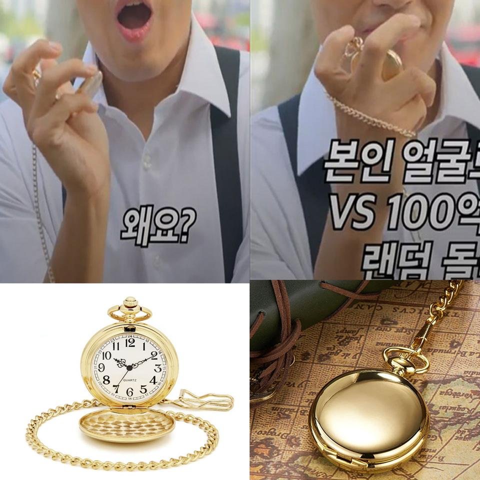 홈 비닐봉투 [‘킥킥킥킥’ 협찬] 금색 아라비아 숫자 체인 목걸이 회중시계 여행 기념품